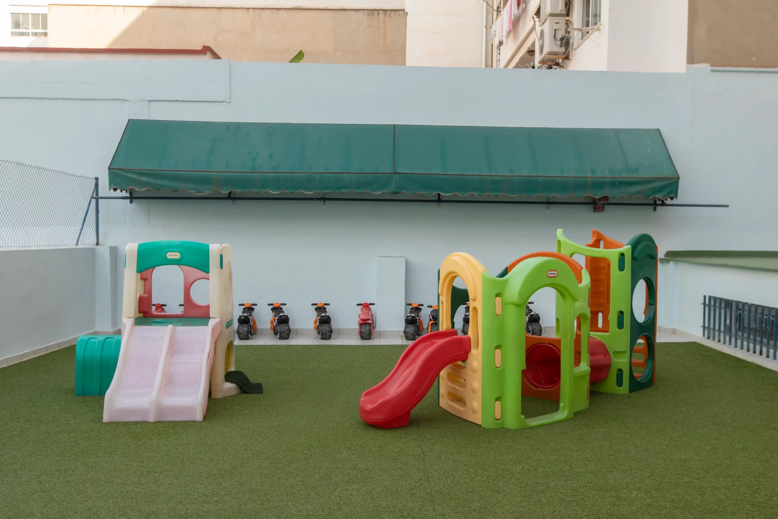 Dos grandes patios soleados, diferenciados por edades, que ofrecen un espacio seguro y alegre para jugar y explorar.